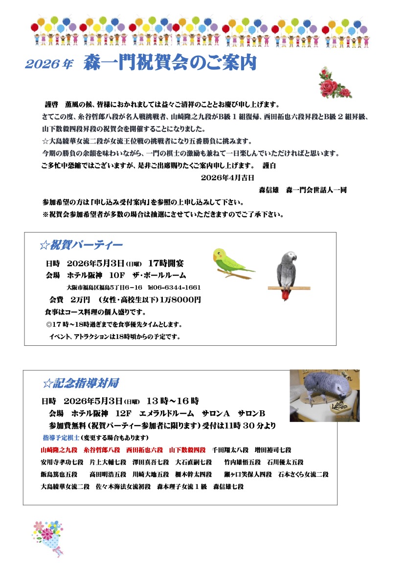 2026年5月3日 日曜日 森一門祝賀会のご案内