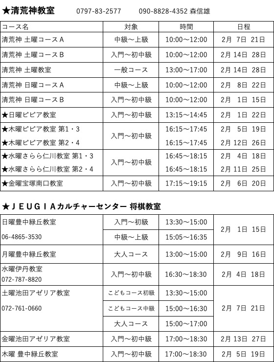 2月各教室日程